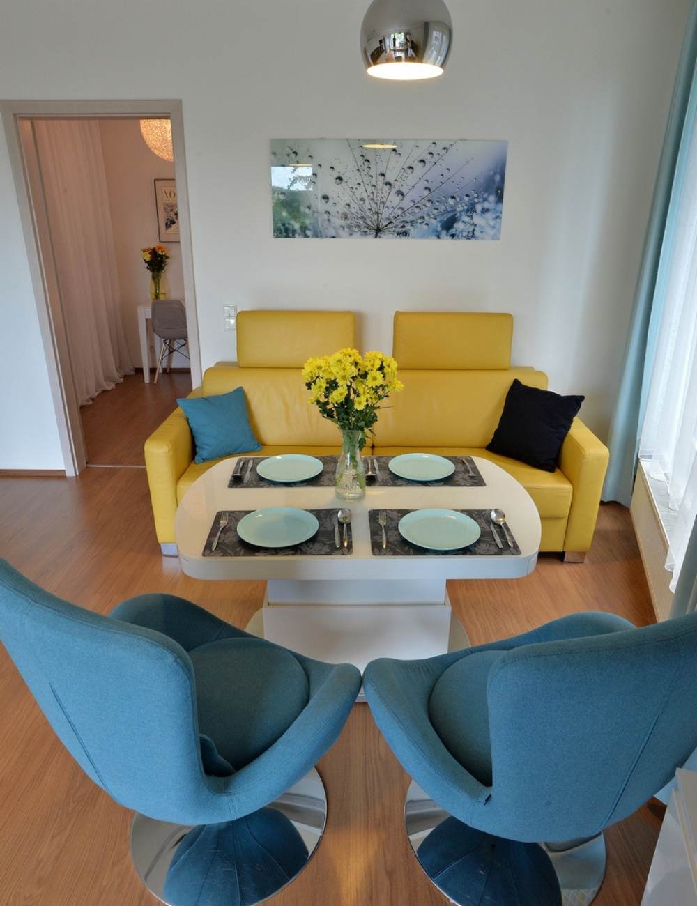 Apartmán je ideální pro 2 až 4 osoby. Nabízí ložnici s manželskou postelí a rozkládací gauč s kvalitní matrací pro další 2 osoby. K dispozici je i jedna skládací postýlka pro malé děti zdarma.